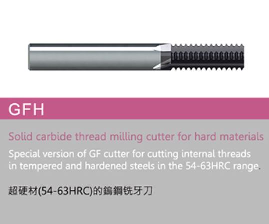 Special version of GF cutter for cutting internal threads in tempered and hardened steels in the 54-63HRC range.